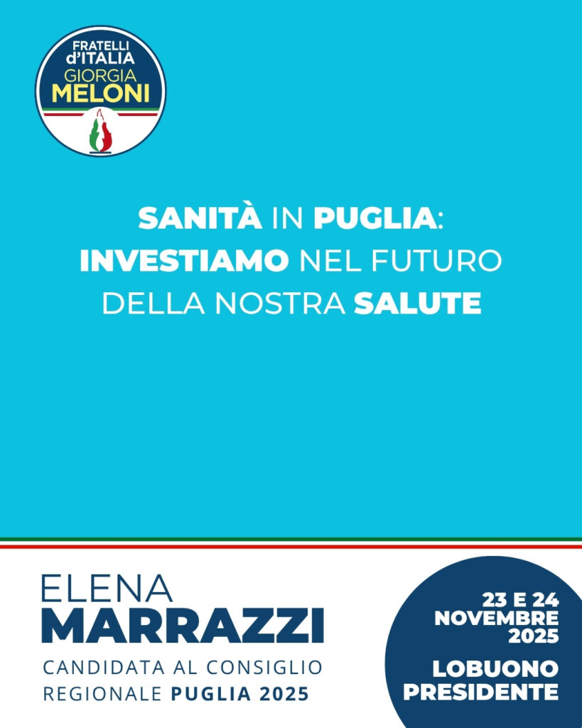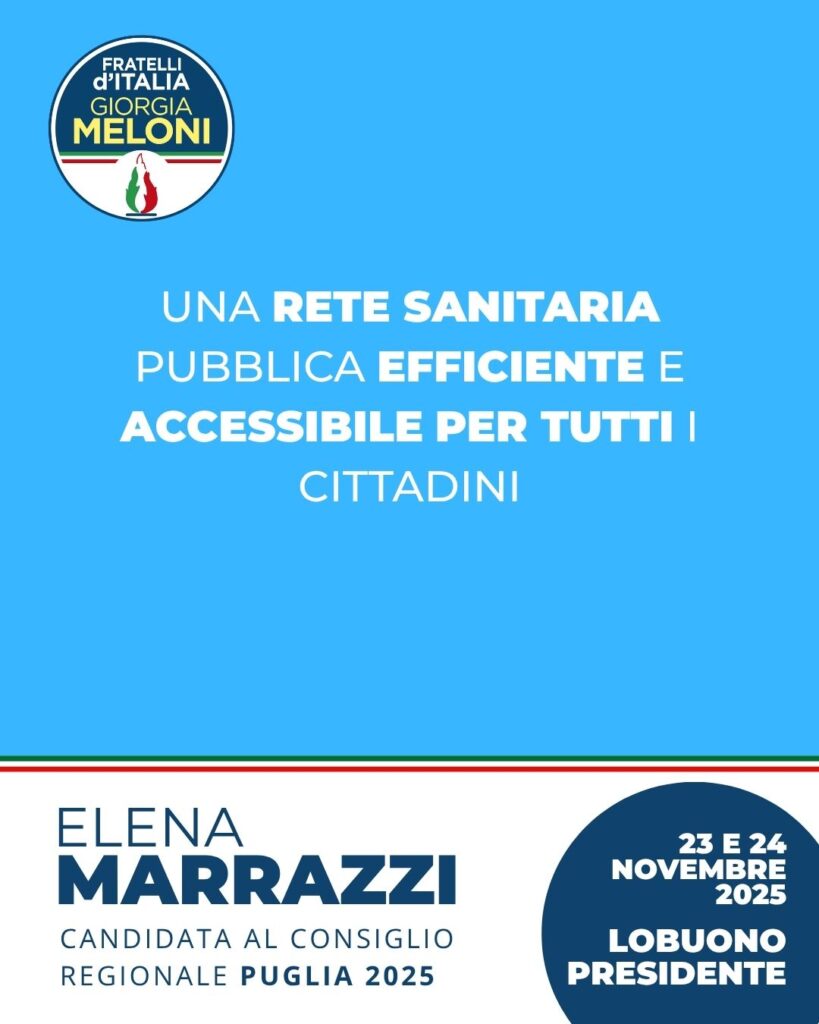 Come candidata di Fratelli d’Italia alle prossime elezioni regionali, sono orgogliosa di sostenere le politiche del governo Meloni, che ha recentemente approvato una manovra di bilancio che rappresenta una svolta per la sanità italiana e, in particolare, per la nostra amata Puglia.